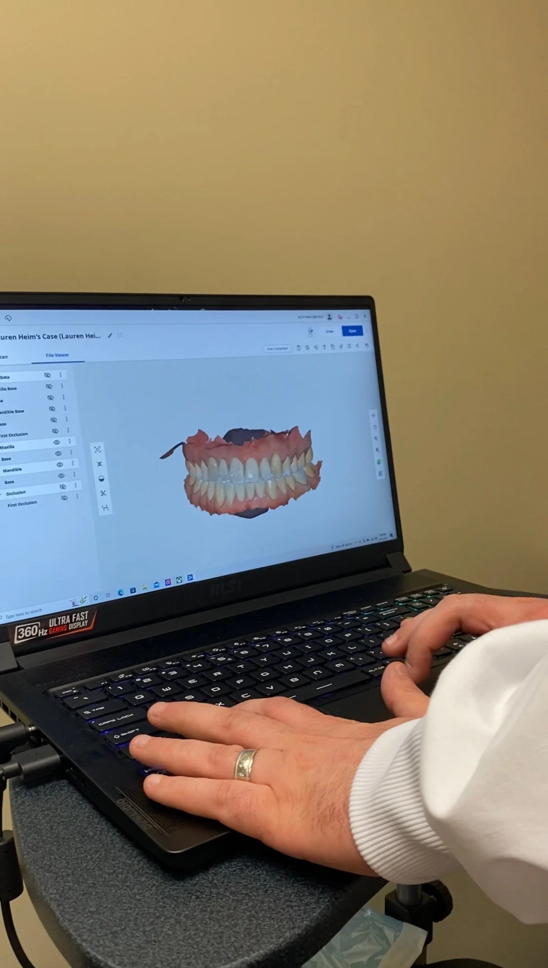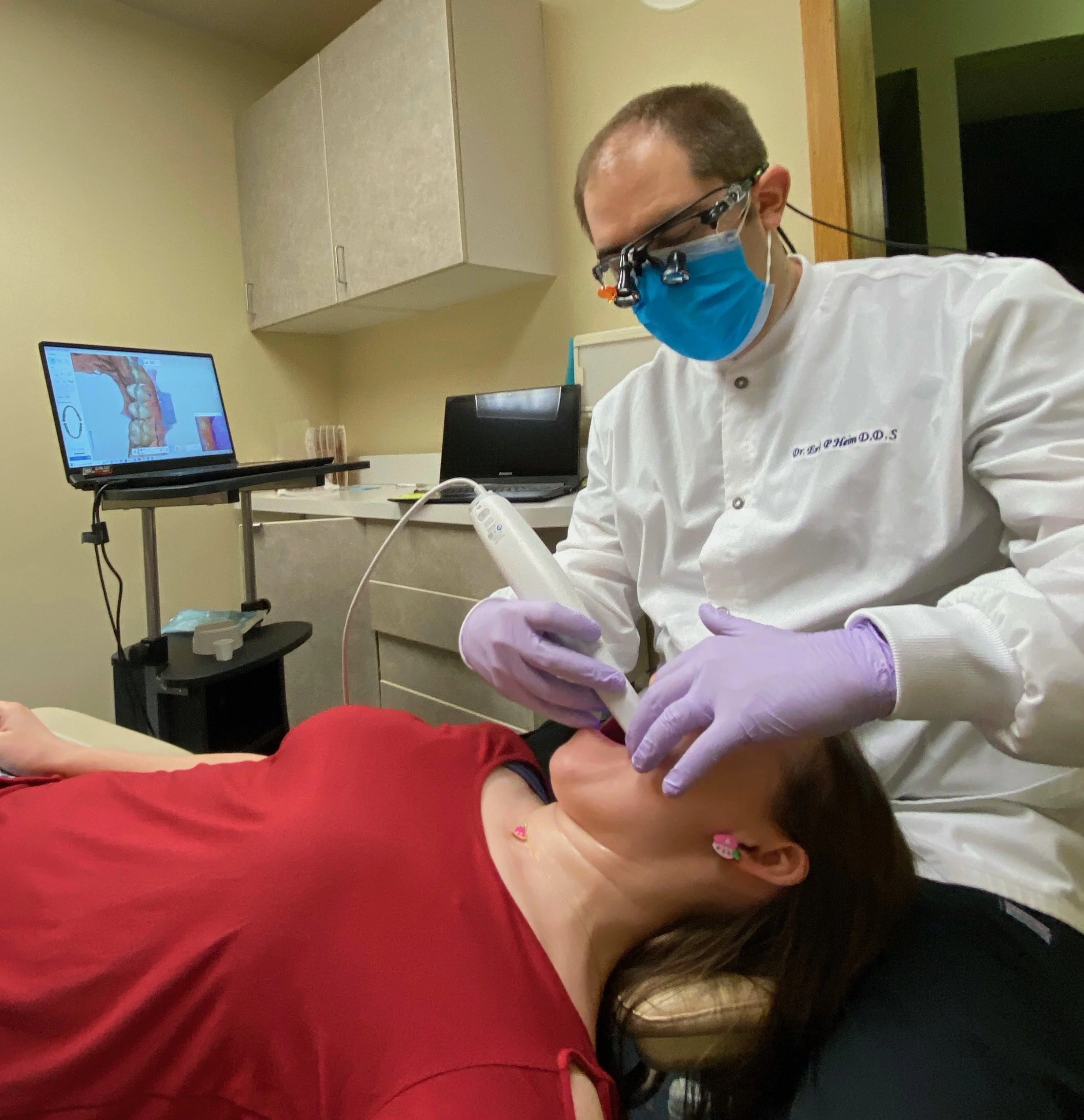 Digital scanning is using a digital scanner to create a digital model of your teeth to electronically send to the lab. At Eric Heim Dental, we are able to use the Medit i700 so we do not have to use the traditional impression material that can cause gagging.